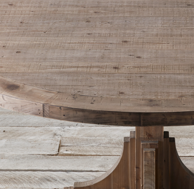 20th C. Reclaimed Pine Trestle Round Dining Table from media.restorationhardware.com Round · dining tables table top material wood. Check out this stunning reclaimed douglas fir round dining table knots and holes are indigenous to the wood finish: All wood are in an antique black rustic finish. Kalalou round recycled wood dining table. Combines the rich tones of teak with a modern take on the classic sunburst pattern. 48 w round dining table solid acacia & recycled woods traditional pedestal base. We handcraft our dining tables using reclaimed douglas fir 2x6's. Reclaimed mixed barnwood and metal circle, industrial wooden farm style rustic kitchen, dining nook decor.